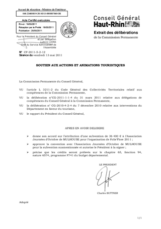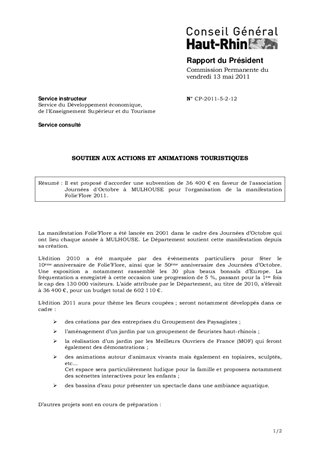 Il est proposé d'accorder une subvention de 36 400 € en faveur de l'association Journées d'Octobre à MULHOUSE pour l'organisation de la manifestation Folie'Flore 2011.