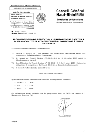 Le présent rapport propose le vote des cotisations de la collectivité à diverses associations, en conformité avec les enveloppes globales "Education à l'Environnement" et « Soutien à la Vie Associative et aux Collectivités » fixées lors du vote du BP 2011 en date du 8 décembre 2010. Les cotisations proposées concernent des structures partenaires suivantes : Association Nationale des Commissions Locales d’Information (ANCLI) pour un montant de 1.000 €, Certification forestière (PEFC) pour un montant de 113 € et Association régionale d’Initiation à l’Environnement et à la Nature (ARIENA) pour un montant de 40 €.