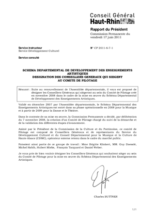 SCHEMA DEPARTEMENTAL DE DEVELOPPEMENT DES ENSEIGNEMENTS ARTISTIQUES DESIGNATION DES CONSEILLERS GENERAUX QUI SIEGENT AU COMITE DE PILOTAGE