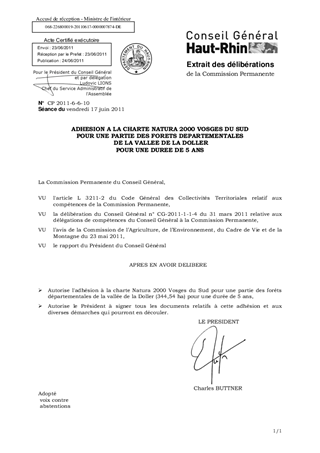 ADHESION A LA CHARTE NATURA 2000 VOSGES DU SUD POUR UNE PARTIE DES FORETS DEPARTEMENTALES DE LA VALLEE DE LA DOLLER POUR UNE DUREE DE 5 ANS