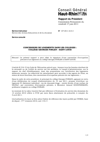 CONCESSIONS DE LOGEMENTS DANS LES COLLEGES : COLLÈGE GEORGES FORLEN – SAINT LOUIS