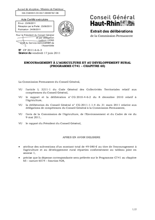 ENCOURAGEMENT À L’AGRICULTURE ET AU DEVELOPPEMENT RURAL (PROGRAMME C741 – CHAPITRE 65)