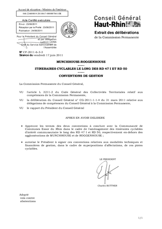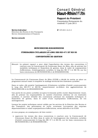 MUNCHHOUSE-ROGGENHOUSE ------ ITINERAIRES CYCLABLES LE LONG DES RD 47 I ET RD 50 ------ CONVENTIONS DE GESTION