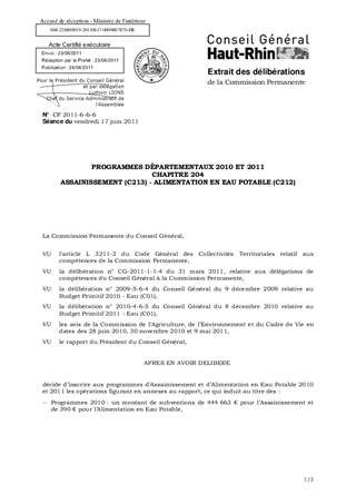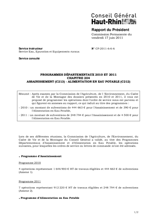 PROGRAMMES DÉPARTEMENTAUX 2010 ET 2011 CHAPITRE 204 ASSAINISSEMENT (C213) - ALIMENTATION EN EAU POTABLE (C212)