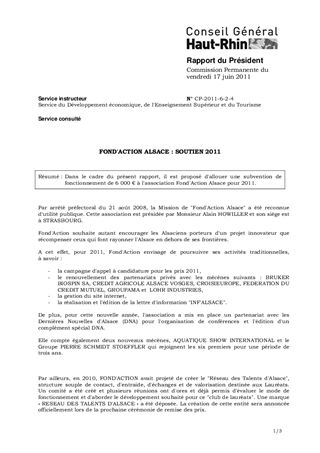 FOND'ACTION ALSACE : SOUTIEN 2011
