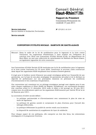 CONVENTION D’UTILITE SOCIALE - HABITATS DE HAUTE-ALSACE