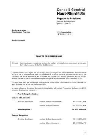 Approbation du compte de gestion du budget principal et du compte de gestion du du budget annexe de la Cité de l'Enfance