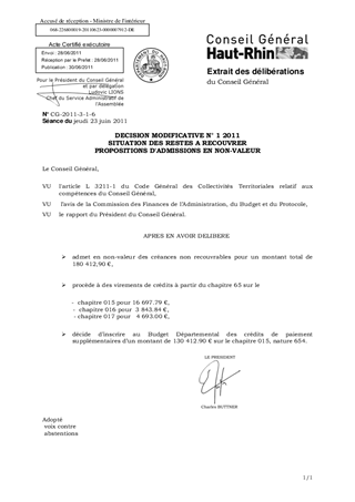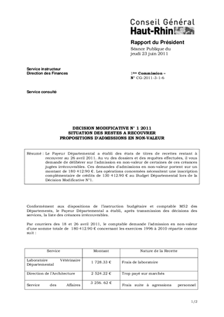 DECISION MODIFICATIVE N° 1 2011SITUATION DES RESTES A RECOUVRERPROPOSITIONS D'ADMISSIONS EN NON-VALEUR
