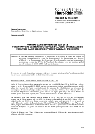 CONTRAT CADRE PLURIANNUEL 2010 2012COMMUNAUTE DE COMMUNES DU SECTEUR D'ILLFURTH COMMUNAUTE DE COMMUNES ILL ET GERSBACH SIVOM DE WAHLBACH ZAESSINGUE