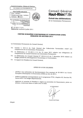 Il vous est proposé dans le cadre du présent rapport d'octroyer au Centre Européen d' Entreprise et d'Innovation (CEEI) une subvention de 50 000 € au titre de 2011.