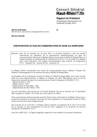 PARTICIPATION AU PLAN DE COMMUNICATION DU SAGE ILL-NAPPE-RHIN