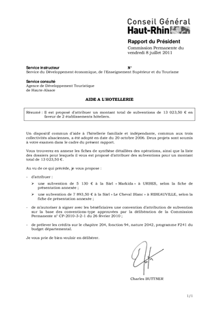 Il est proposé d'attribuer un montant total de subventions de 13 023,50 € en faveur de 2 établissements hôteliers.