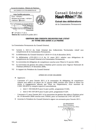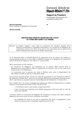 Le présent rapport a pour objet la conclusion des avenants annuels 2011 (objectifs quantitatifs et enveloppes financières) à la convention de délégation de compétence conclue avec l’Etat, d'une part et à la convention pour la gestion des aides à l'habitat privé conclue avec l’Anah, d'autre part.