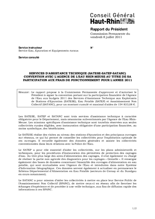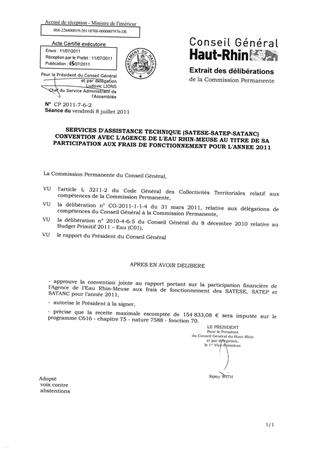 SERVICES D'ASSISTANCE TECHNIQUE (SATESE-SATEP-SATANC)CONVENTION AVEC L'AGENCE DE L'EAU RHIN-MEUSE AU TITRE DE SA PARTICIPATION AUX FRAIS DE FONCTIONNEMENT POUR L'ANNEE 2011