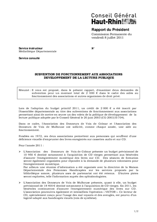 SUBVENTION DE FONCTIONNEMENT AUX ASSOCIATIONSDEVELOPPEMENT DE LA LECTURE PUBLIQUE