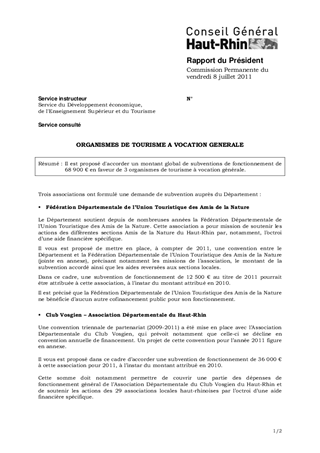 Il est proposé d'accorder un montant global de subventions de fonctionnement de 68 900 € en faveur de 3 organismes de tourisme à vocation générale.