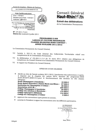 PROGRAMME E 858 LANGUE ET CULTURE REGIONALESCLASSES BILINGUES HORS CONTRAT :ANNEE SCOLAIRE 2011/2012