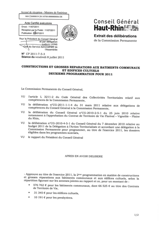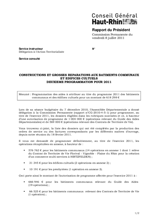 CONSTRUCTIONS ET GROSSES REPARATIONS AUX BATIMENTS COMMUNAUX ET EDIFICES CULTUELSDEUXIEME PROGRAMMATION POUR 2011