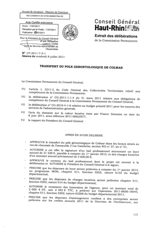 TRANSFERT DU POLE GERONTOLOGIQUE DE COLMAR