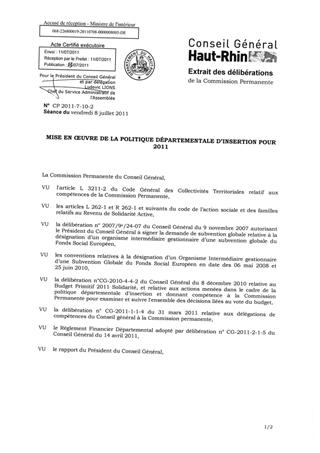 MISE EN OEUVRE DE LA POLITIQUE DÉPARTEMENTALE D’INSERTION POUR 2011