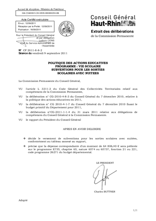 POLITIQUE DES ACTIONS EDUCATIVES PROGRAMME : VIE SCOLAIRE SUBVENTIONS POUR LES SORTIES SCOLAIRES AVEC NUITEES
