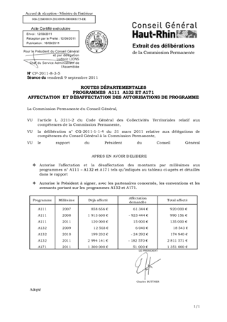ROUTES DÉPARTEMENTALES PROGRAMMES A111 A132 ET A171 AFFECTATION ET DÉSAFFECTATION DES AUTORISATIONS DE PROGRAMME