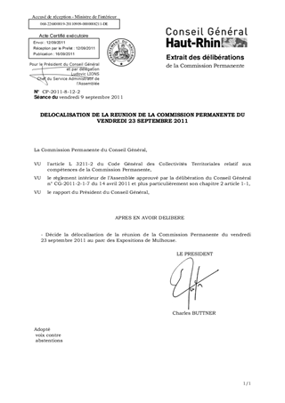 DELOCALISATION DE LA REUNION DE LA COMMISSION PERMANENTE DU VENDREDI 23 SEPTEMBRE 2011