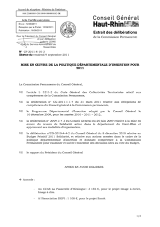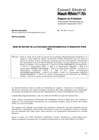 MISE EN OEUVRE DE LA POLITIQUE DEPARTEMENTALE D’INSERTION POUR 2011