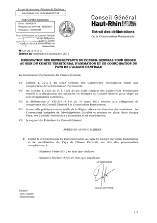 DESIGNATION DES REPRESENTANTS DU CONSEIL GENERAL POUR SIEGER AU SEIN DU COMITE TERRITORIAL D’ANIMATION ET DE COORDINATION DU PAYS DE L’ALSACE CENTRALE