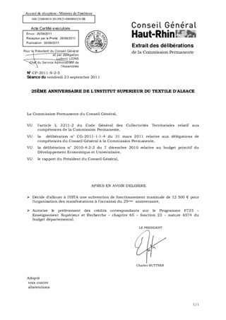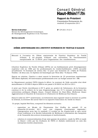 A l'occasion du 25ème anniversaire de l'Institut Supérieur du Textile d'Alsace, il est proposé d'allouer une subvention de fonctionnement exceptionnelle de 12 500 € pour l'organisation des manifestations.