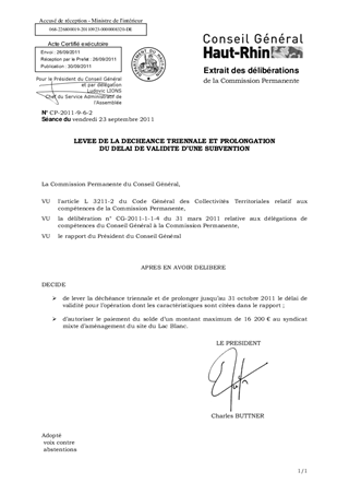 LEVEE DE LA DECHEANCE TRIENNALE ET PROLONGATION DU DELAI DE VALIDITE D’UNE SUBVENTION