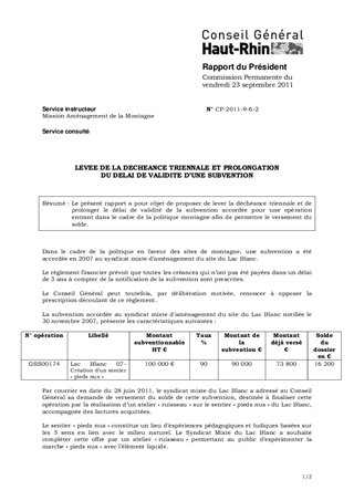 Le présent rapport a pour objet de proposer de lever la déchéance triennale et de prolonger le délai de validité de la subvention accordée pour une opération entrant dans le cadre de la politique montagne afin de permettre le versement du solde.