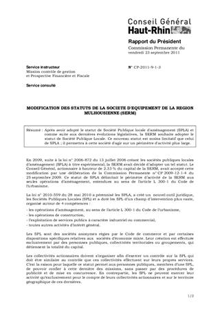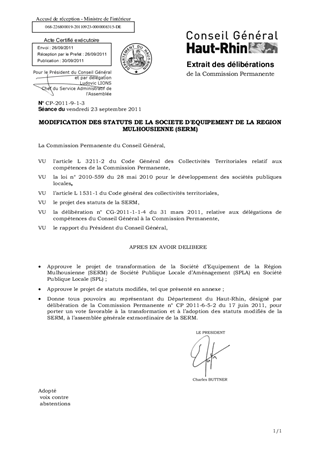 MODIFICATION DES STATUTS DE LA SOCIETE D'EQUIPEMENT DE LA REGION MULHOUSIENNE (SERM)