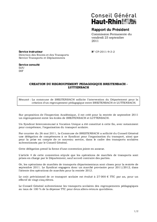 CREATION DU REGROUPEMENT PEDAGOGIQUE BREITENBACH - LUTTENBACH