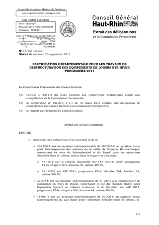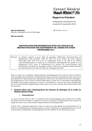 PARTICIPATION DEPARTEMENTALE POUR LES TRAVAUX DE RESTRUCTURATION DES EQUIPEMENTS DE LOISIRS ETE HIVER PROGRAMME 2011