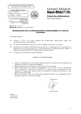 Dans le cadre du présent rapport, il est proposé d'acquérir 53 actions appartenant au Port Autonome de Strasbourg qui souhaite se retirer du capital d'ALSABAIL, au prix de 27,17 € par titre