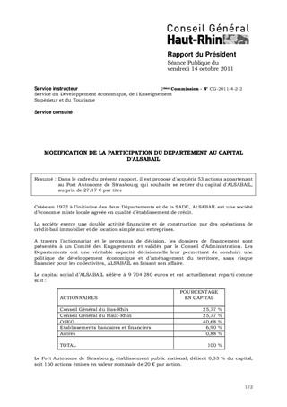 MODIFICATION DE LA PARTICIPATION DU DEPARTEMENT AU CAPITAL D'ALSABAIL