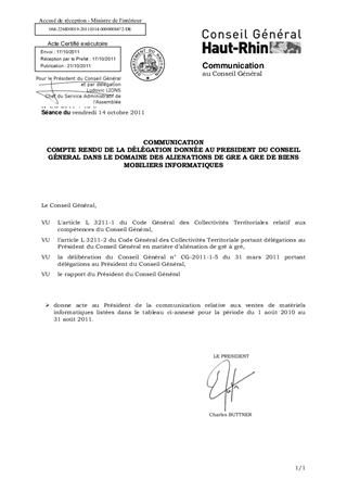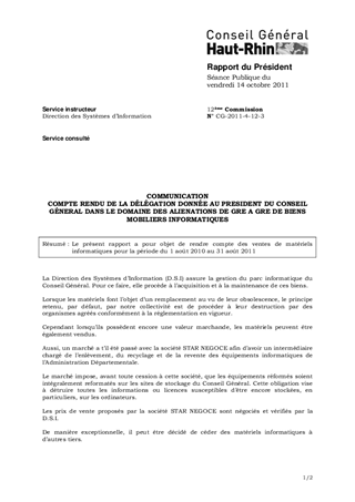 COMMUNICATION COMPTE RENDU DE LA DÉLÉGATION DONNÉE AU PRESIDENT DU CONSEIL GÉNERAL DANS LE DOMAINE DES ALIENATIONS DE GRE A GRE DE BIENS MOBILIERS INFORMATIQUES