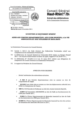 : Il vous est proposé de voter l'individualisation des aides prévues au B.P 2011 dans le cadre du soutien à l'animation sportive pour les Comités départementaux et les clubs sportifs. Le rapport prévoit également l'attribution d'un soutien à la vie associative et de bourses départementales aux titulaires du BAFA-BAFD. Le total de l'enveloppe à engager dans ce rapport s'élève à 63 122 € en dépenses de fonctionnement.