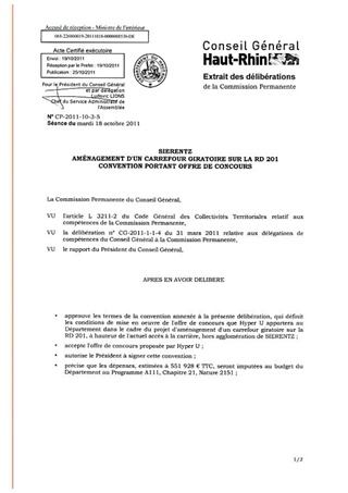 SIERENTZAMÉNAGEMENT D'UN CARREFOUR GIRATOIRE SUR LA RD 201CONVENTION PORTANT OFFRE DE CONCOURS