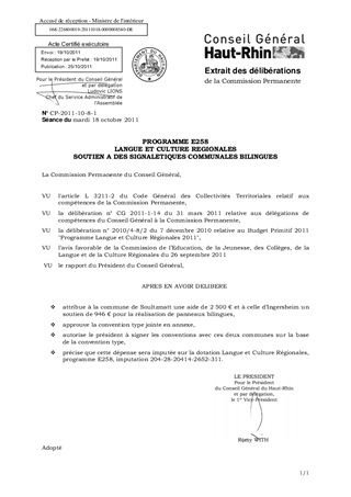 PROGRAMME E258 LANGUE ET CULTURE REGIONALES SOUTIEN A DES SIGNALETIQUES COMMUNALES BILINGUES