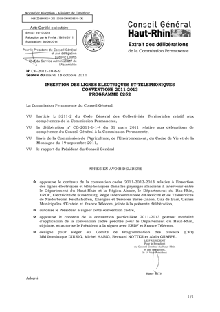 Le 20 décembre 2007 ont été signées à l’Hôtel du Département de COLMAR les conventions de partenariat avec les concessionnaires électriques et téléphoniques, aux côtés de la Région Alsace et du Département du Bas-Rhin, pour la poursuite du programme d’insertion paysagère des réseaux secs aériens pour la période 2008 2010. Cette convention étant arrivée à son terme, il est proposé de renouveler ce partenariat sur la période 2011-2013 sur des bases techniques et financières similaires.