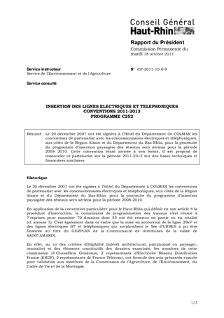 INSERTION DES LIGNES ELECTRIQUES ET TELEPHONIQUES CONVENTIONS 2011-2013 PROGRAMME C252