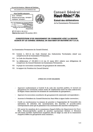 CONSTITUTION D’UN GROUPEMENT DE COMMANDE AVEC LA REGION ALSACE ET LE CONSEIL GENERAL DU BAS-RHIN EN MATIERE DE T.I.C.E.