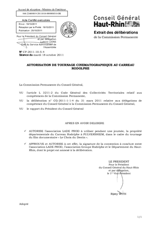 AUTORISATION DE TOURNAGE CINEMATOGRAPHIQUE AU CARREAU RODOLPHE