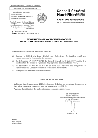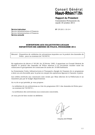 SUBVENTIONS AUX COLLECTIVITES LOCALES REPARTITION DES AMENDES DE POLICE, PROGRAMME 2011