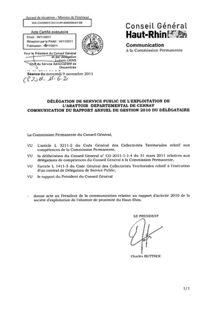 Cette communication vous propose de prendre acte du rapport annuel de gestion 2010 de la société d’exploitation de l’abattoir départemental de CERNAY