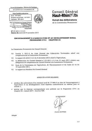 Dans le cadre du Budget Primitif 2011, un montant de 174 000 € a été inscrit au titre de l’encouragement à l’agriculture et au développement rural (rapport CG 2009 5-6-2). Il vous est proposé de prélever 17 000 € sur ces crédits pour soutenir les actions envisagées pour 2011 par les organismes récapitulés dans le tableau ci-joint (annexe 1).