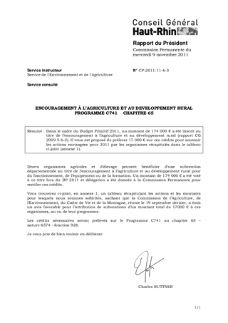 ENCOURAGEMENT À L’AGRICULTURE ET AU DEVELOPPEMENT RURALPROGRAMME C741 CHAPITRE 65