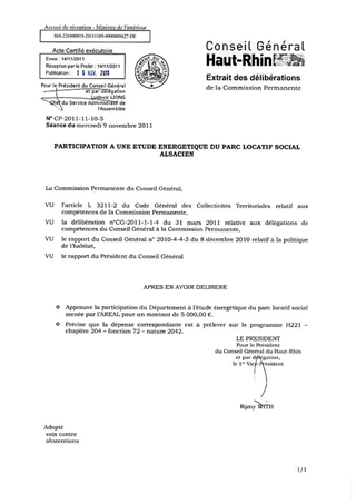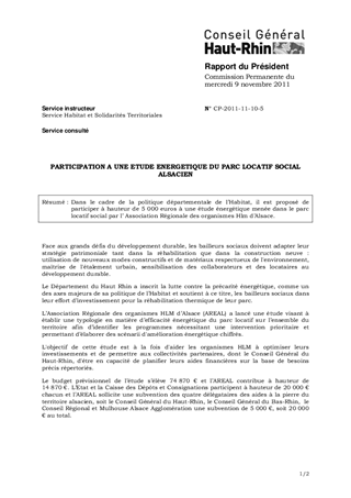 Dans le cadre de la politique départementale de l’Habitat, il est proposé de participer à hauteur de 5 000 euros à une étude énergétique menée dans le parc locatif social par l’ Association Régionale des organismes Hlm d’Alsace.